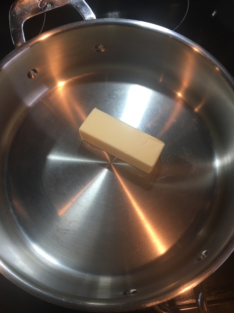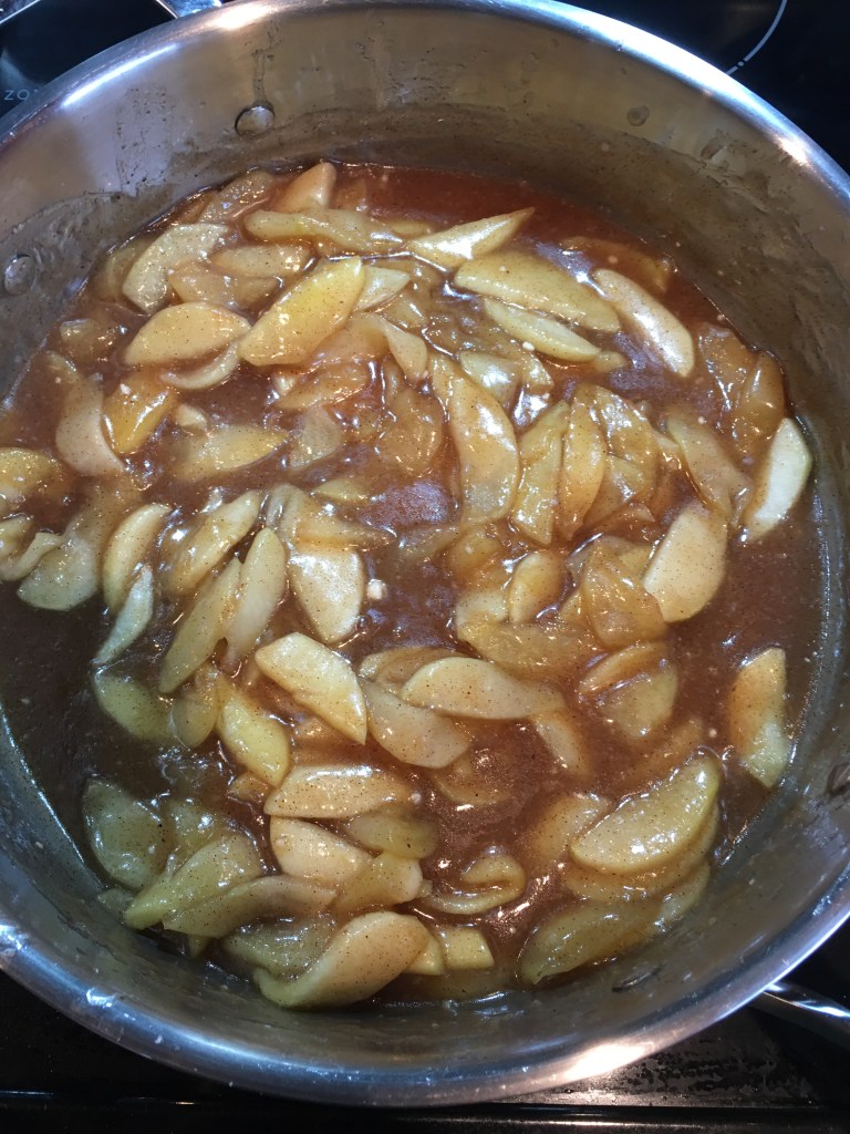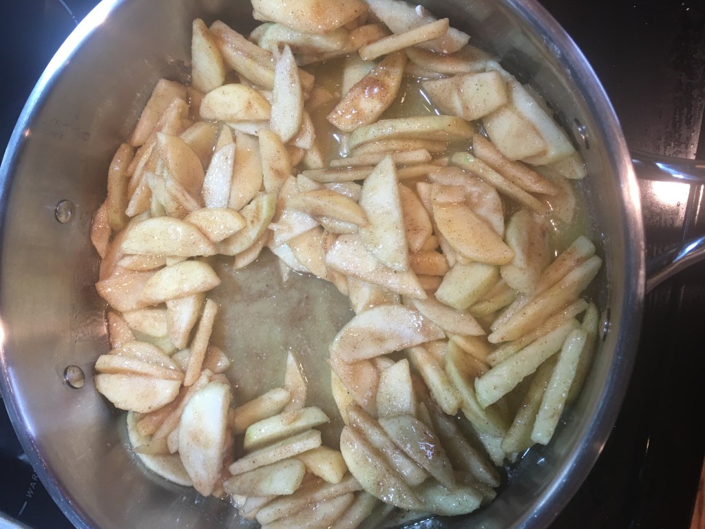 Add the butter to a sauce pan and melt it down on low heat. Once the butter is melted add the apple mixture into the butter.