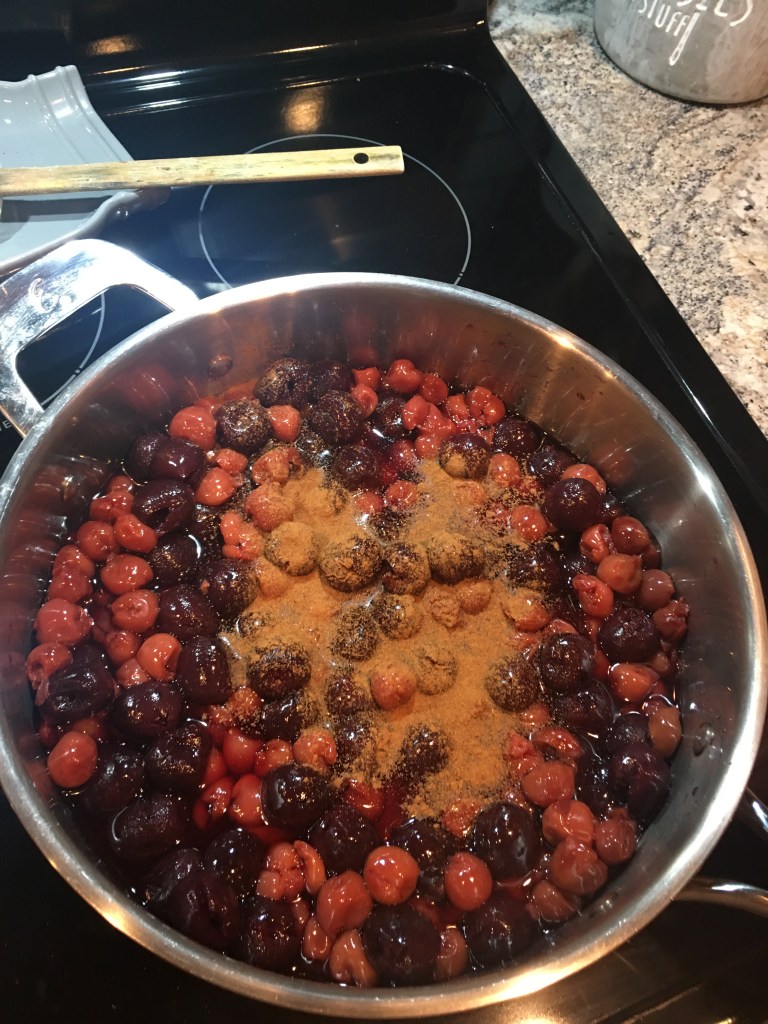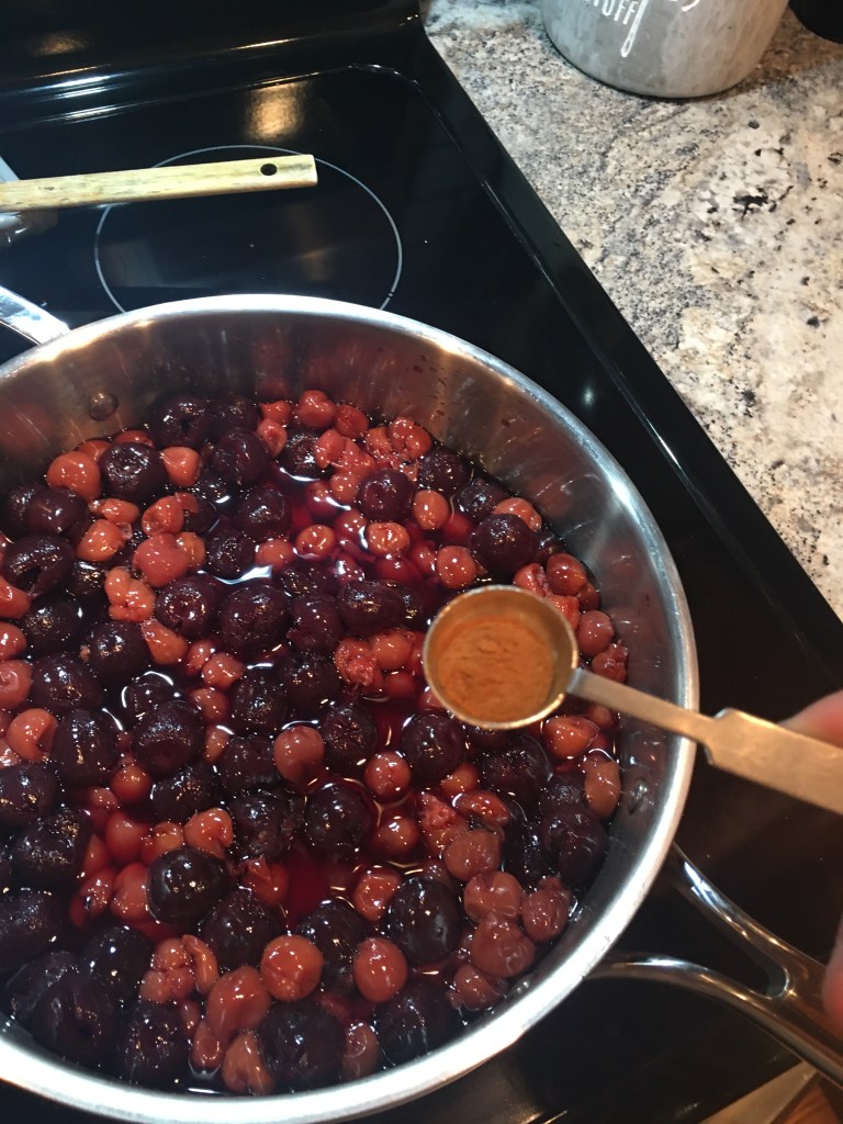 - 5 Cups of Mixed Cherries (I used 2 cans of tart red cherries, and two cans of dark sweet cherries )